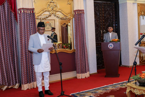 राष्ट्रपति रामचन्द्र पौडेलसमक्ष प्रजातान्त्रिक समाजवादी गणतन्त्र श्रीलङ्काकाका लागि नेपालका नवनियुक्त आवासीय राजदूत पूर्णबहादुर नेपालीले राष्ट्रपतिको कार्यालयमा आज आयोजित विशेष समारोहमा पद तथा गोपनीयताको शपथ लिएका छन्।