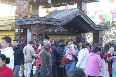 स्वयम्भूमा मञ्जुश्री दर्शन र सरस्वतीको पूजाको रौनक