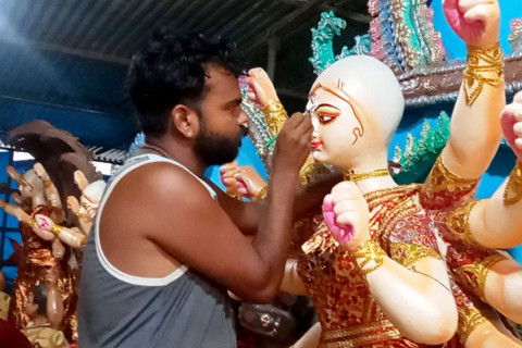 मूर्ति निर्माण कार्य अन्तिम चरणमा पुगेकोले उनी अहिले सजावट तथा रंगरोगन कार्यमा लागेका छन । ‘डेलीभरी समयमै दिन छ अहिले मुर्ति बनाउन भ्याईनभ्याई छ’ उनले भने ।
