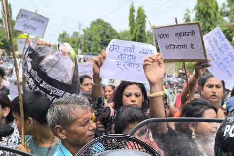 उनीहरूले भ्रष्ट सरकार मुर्दावाद, स्थानीय प्रशासन मुर्दावाद, न्यायाधीश मुर्दावाद, छोरा मर्यो, न्याय नमरोस् नारासहितको प्लेकार्ड बोकेका थिए।