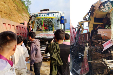रुकुमपश्चिमबाट काठमाडौं आउँदै गरेको बस तनहुँको डुम्रेमा दुर्घटना