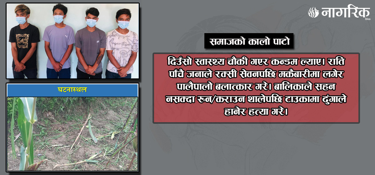 ‘त्यो दिन उनीहरू दिउँसो स्वास्थ्य चौकी गएर कन्डम ल्याए। राति पाँचै जनाले रक्सी सेवन गरे,’ एसपी कार्कीले भने, ‘त्यसपछि मृतक बालिकालाई मकै बारीमा लगेर पालैपालो बलात्कार गरेको देखिन्छ।’