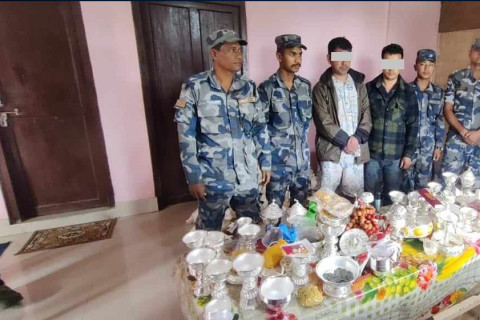 इलाम जिल्लाको सुर्योदय नगरपालिका–२ चारमाइलबाट हिजो (आइतबार) सशस्त्र प्रहरीले ३२ लाख ६९ हजार ५ सय ५७ रुपैयाँको चाँदी र सुनको जलप लगाएको गहनासहित दुई जना नियन्त्रणमा लिएको छ।