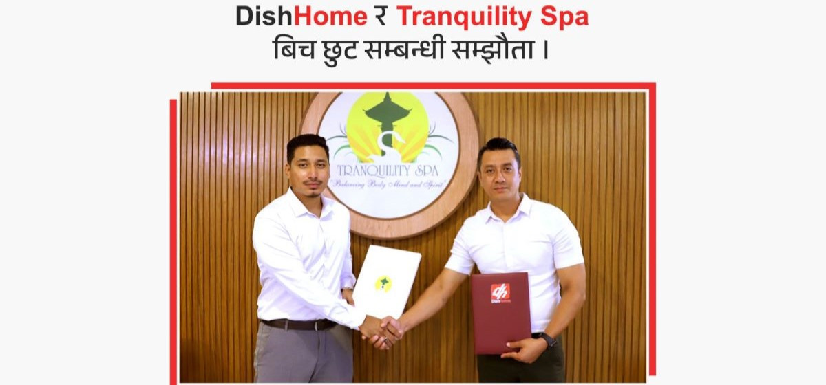 यस साझेदारीलाई औपचारिक बनाउने क्रममा Tranquility Spa and Services का प्रमुख सञ्चालन अधिकृत (COO) श्री रणिल फाइजो र DishHome का Chief of New Product Development Officer सबिन महर्जन बीच समझदारी पत्र (MoU)मा हस्ताक्षर गरिएको हो।