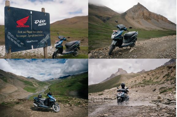 नेपालको सवारी साधन इतिहासमै पहिलो पटक कुनै स्कूटरले ५ हजार ३ सय मिटर उचाइमा अवस्थित ज्याङला पास (उपल्लो डोल्पा)सम्मको साहसिक यात्रा सफलतापूर्वक पूरा गरेको छ । यो कीर्तिमानी यात्रा नेपाल एट्ठ वन्डर टोलीले स्याकार ट्रेडिङ कम्पनी प्रालिको सहकार्यमा होण्डा डिओ १२५ स्कूटर मार्फत सम्पन्न गरेको हो ।