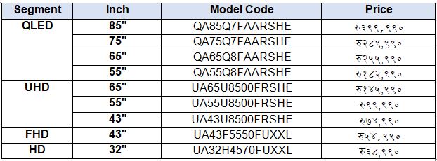 सामसङ को QLED 4K लाइनअपमा QA85Q7F, QA75Q7F, QA65Q8F, र QA55Q8F मोडेलहरू प्रमुख आकर्षण बनेका छन्।
