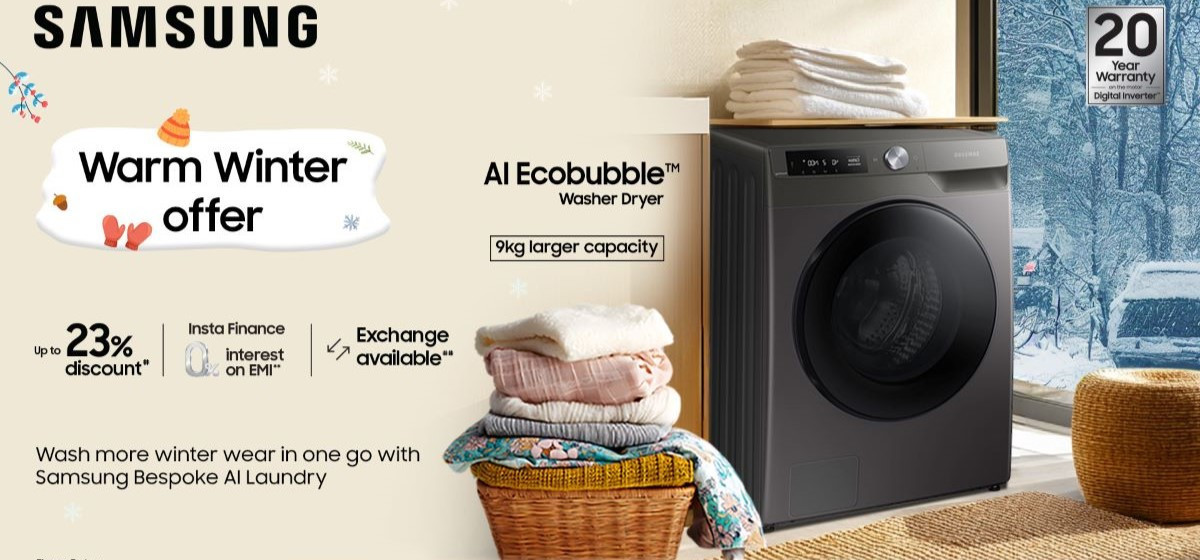 सामसङ नेपालले यस जाडो महिनालाई झन् सहज र आरामदायक बनाउनका लागी Warm Winter Offer को घोषणा गरेको छ। यो अफर नोभेम्बर २१ देखि जनवरी १४ सम्म देशभरका अधिकृत सामसङ रिटेलरहरूमा लागू हुनेछ। अफरअन्तर्गत वाशिङ मेसिन र रेफ्रिजिरेटरका विभिन्न प्रकारमा आकर्षक छुट तथा क्यासब्याक र सरल फाइनान्स सुविधा उपलब्ध हुनेछ।