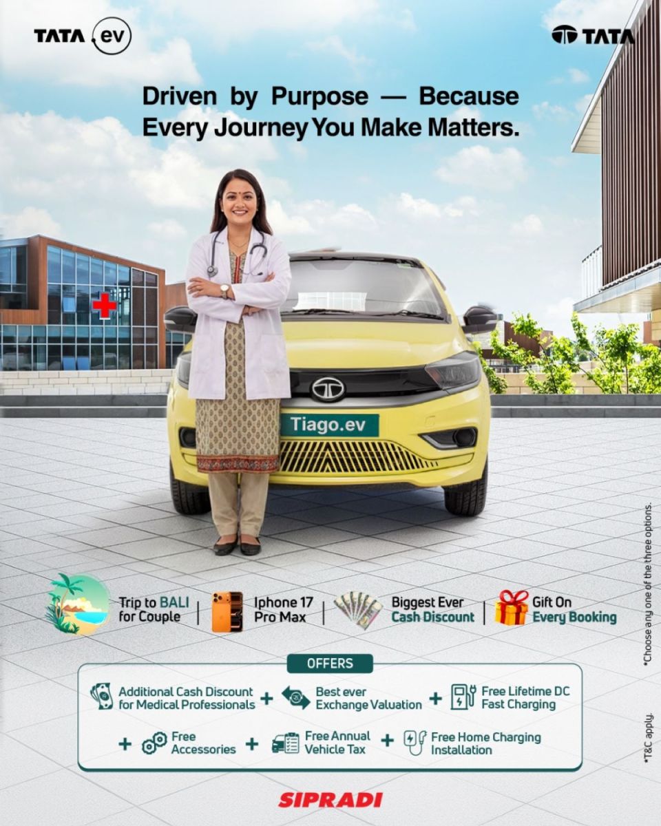 टाटा मोटर्स नेपालका लागि एकमात्र अधिकृत वितरक सिप्रदी ट्रेडिङ प्रा.लि.ले समाजका लागि निरन्तर सेवा गरिरहेका मेडिकल समुदायप्रति सम्मान व्यक्त गर्दै टियागो.इभीका लागि विशेष योजना सार्वजनिक गरेको छ।