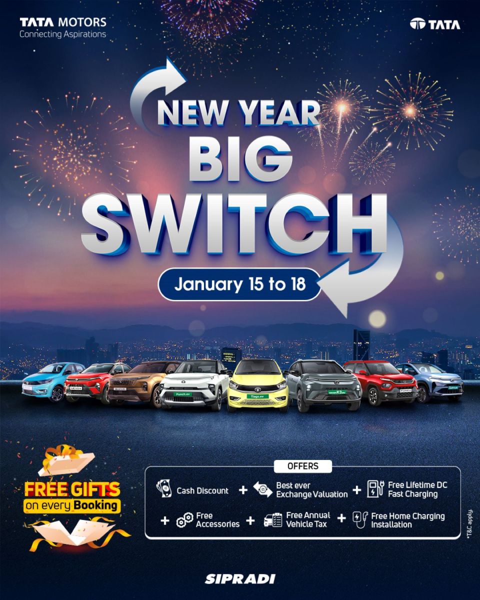 टाटा मोटर्सको नेपालका लागि आधिकारिक वितरक सिप्रदी ट्रेडिङ प्रा.लि.ले अङ्ग्रेजी नयाँवर्ष २०२६ को अवसरमा ग्राहकहरूका लागि विशेष ‘न्यूइयर बिग स्विच’अभियान सार्वजनिक गरेको छ।
