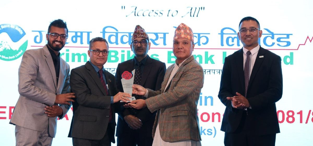 आर्थिक वर्ष २०८१/०८२ मा विकास बैंकहरु मध्ये सबैभन्दा बढी डिजिटल तथा त्तच्कारोबार गरे वापत उक्त अवार्डबाट सम्मानित भएको हो ।