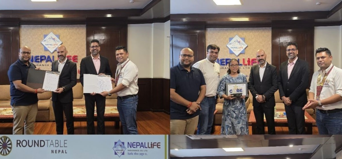 नेपाल लाइफ इन्स्योरेन्सको केन्द्रीय कार्यालय कमलादीमा आयोजित एक विशेष समारोहका बिच राउन्ड टेबल नेपालका अध्यक्ष प्रवेश अग्रवालले फोहोर सङ्कलन सम्बन्धी प्रतिवेदन यस कम्पनीका प्रमुख कार्यकारी अधिकृत प्रवीण रमण पराजुलीलाई हस्तान्तरण गरेका हुन् ।