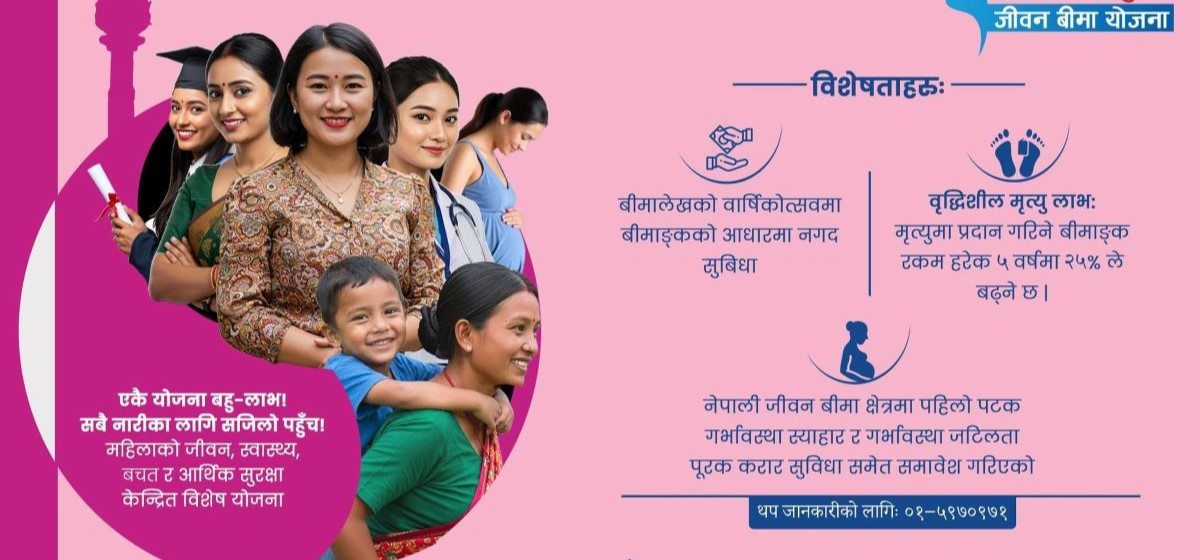 महिलाको जीवन, स्वास्थ्य, बचत र आर्थिक सुरक्षा केन्द्रित विशेष योजना हो । यस योजनको मुख्य विशेषता भनेको बिमालेखको वार्षिकोत्सवमा बिमाङ्कको आधारमा नगद सुबिधा प्रदान गरिनु,वृद्धिशील मृत्यु लाभः मृत्युमा प्रदान गरिने बिमाङ्क रकम हरेक ५ वर्षमा २५ प्रतिशतले बढ्नु रहेको छ । नेपाली जीवन बिमा क्षेत्रमा पहिलो पटक गर्भावस्था स्याहार र गर्भावस्था जटिलता पूरक करार सुविधा समेत समावेश गरिएको यस योजनालेनारीको जीवन, स्वास्थ्य, बचत र आर्थिक सुरक्षा एकैसाथ प्रदान गरी सुनिश्चित भविष्यको सुरुवात गर्नेछ ।