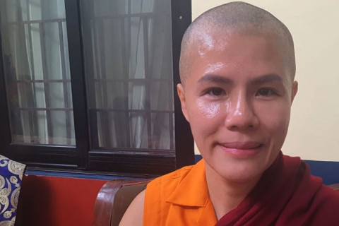 थेम्सुम छ्योफेल्लीङ गुम्बामा एक धार्मिक कार्यक्रमको आयोजना गरी उनी भिक्षुणी बनिन् । स्याङ लोङले २० वर्षअघि नै गुरु खेम्बोच्चे आचार्य कमल मोक्तानबाट दीक्षा ग्रहण गर्दै थाङ्ग स्याङ यिन (गुरुमा) बनेकी थिइन् ।