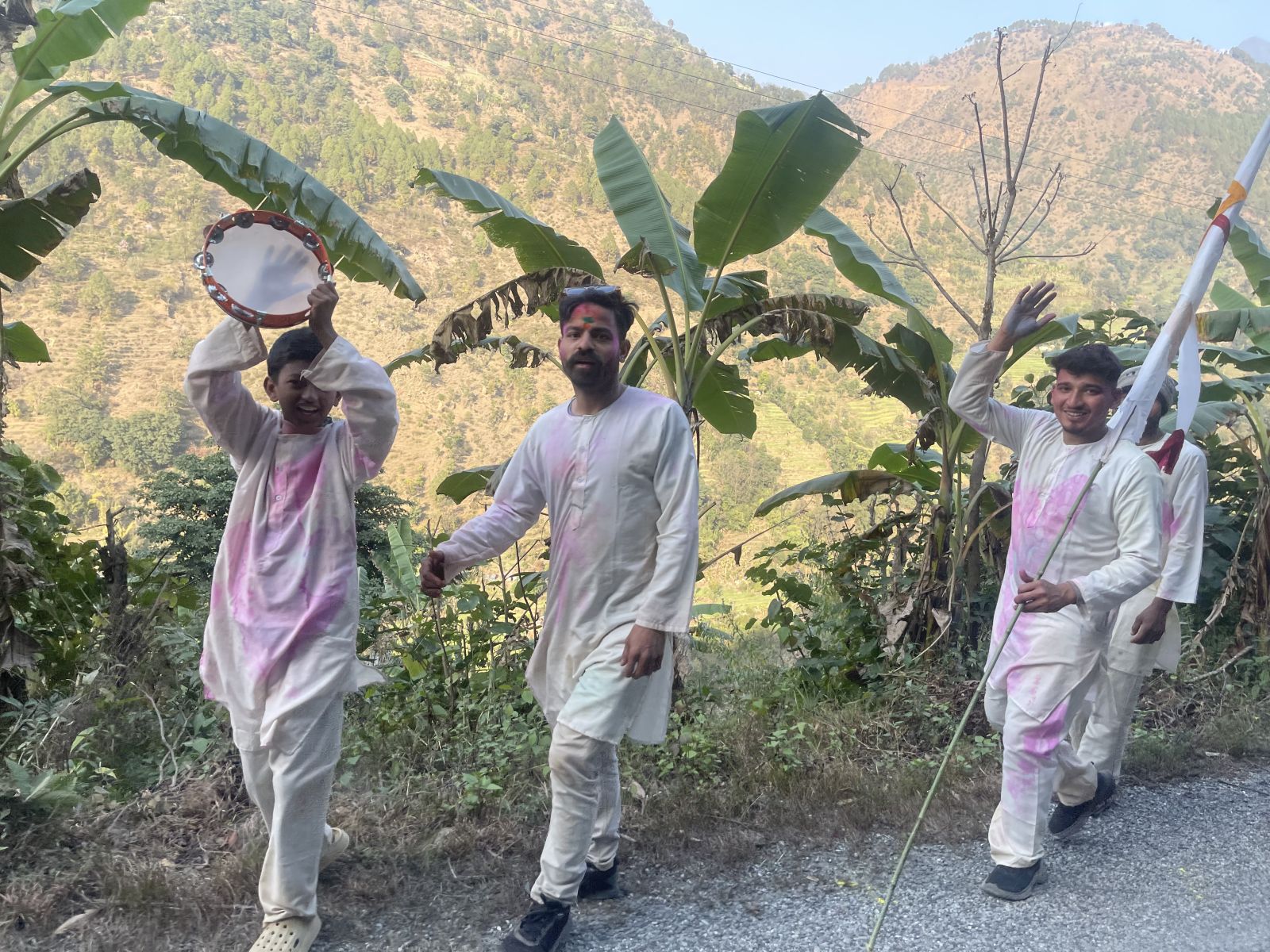 स्थानीय बाजाहरू, ढोल र दमाहाको तालमा गाइने होली गीत र खेलिने देउडाले यहाँको वातावरण गुञ्जायमान हुन्छ। हातमा रङ र रङ्गीन घोल पदार्थ लिएर गाउँदै, बजाउँदै, रमाइलो र होहल्ला गर्दै आपसी रिसईबीलाई बिर्सेर उत्साह र उमङ्गका साथ धुमधामले पर्व मनाइन्छ।