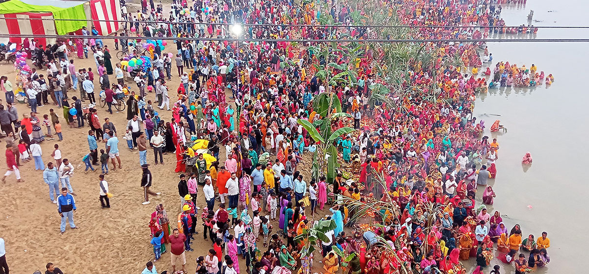 कपिलवसस्तु नगरपालिका– १ स्थित जमुहरा नाला र रामाट नदी, पकडी कृष्णनगर बहादुरगंज लगायतका ताल तलैयामा उनीहरूले विहान उदाउँदो सूर्यको विशेष पूजापाठ र आधारना गरेका थिए। पर्वको चौथो दिन आज व्रत लिनेहरू पुनः पोखरी, जलाशय किनारमा पुगी सोमबार साँझ गरेको क्रम दोहोर्याइ प्रातः कालीन सूर्यलाई अर्घ दिई पर्वको समापन गरेका हुन्।