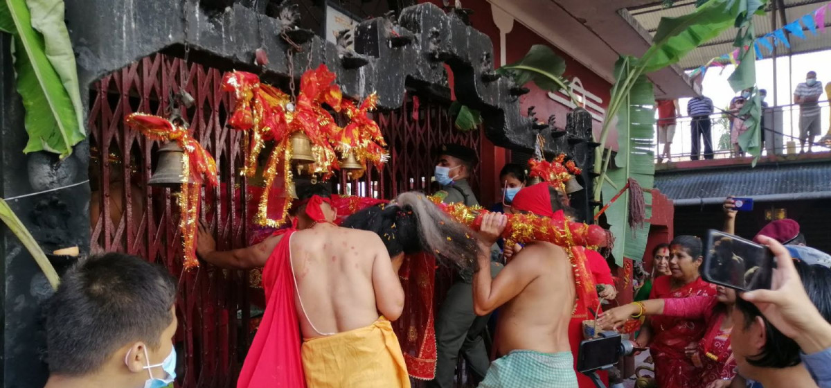 'केरामा ब्रह्माणी, दारिममा रक्तदन्तिका, धानमा लक्ष्मी, हलेदोमा दुर्गा, मानवृक्षमा चामुण्डा, उखुमा कालिका, बेलपत्रमा शिवा, अशोकमा शोकरहिता र जयन्तीमा कात्तिकी देवीको आवाहन गरी पूजा गरिन्छ, यी देवी नवदुर्गाका पार्षद् अर्थात् सहायक हुन्,' उनले भने।
