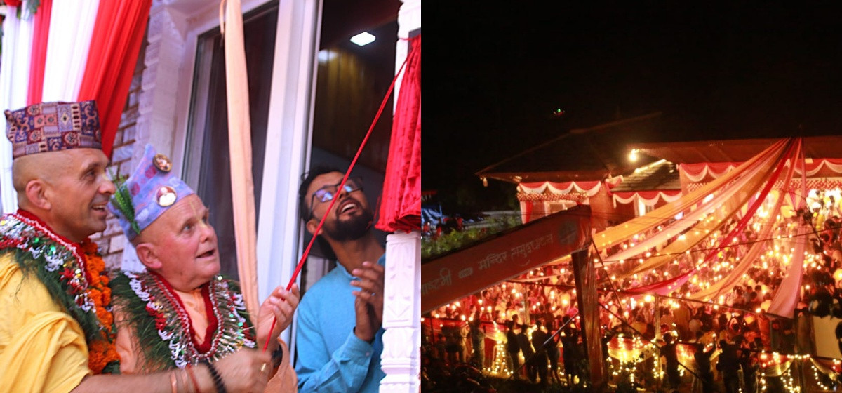 उद्घाटन समारोहमा इस्कोन नेपालका क्षेत्रीय सचिव परम पुज्य महाविष्णु स्वामी, इस्कोन नेपालका क्षेत्रीय सुपरिवेक्षक पत्री दास र इस्कोन नेपालका केन्द्रीय अध्यक्ष परमेश्वर अच्युत दास सहभागी थिए। साथै राधा बेणी माधव, शालिग्राम, जगन्नाथ, बलदेव, सुभद्रा, गौर नित्याई र विग्रहको स्थापना पनि गरिएको छ।