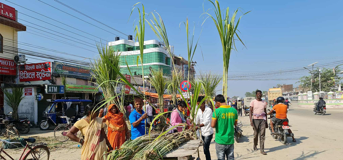 गम्हरी धान, हरियो पातसहित उखु, पातसहितको अदुवा, सानो बोडी, केरा, स्याउ, सुन्तला, सुथनी, झुत्रोसहितको नरिवल, कागती, केराको थाम, गहुँ आदिको प्रयोगले यस पर्वले किसानको श्रमको कदर गरेको देखिन्छ। ‘हामीले बनाएको सामान अधिक मात्रामा बिक्री हुने बेला यही हो’, लहान नगरपालिका– ४ का उमेश पण्डित (कुमाल) सुनाउँछन्।
