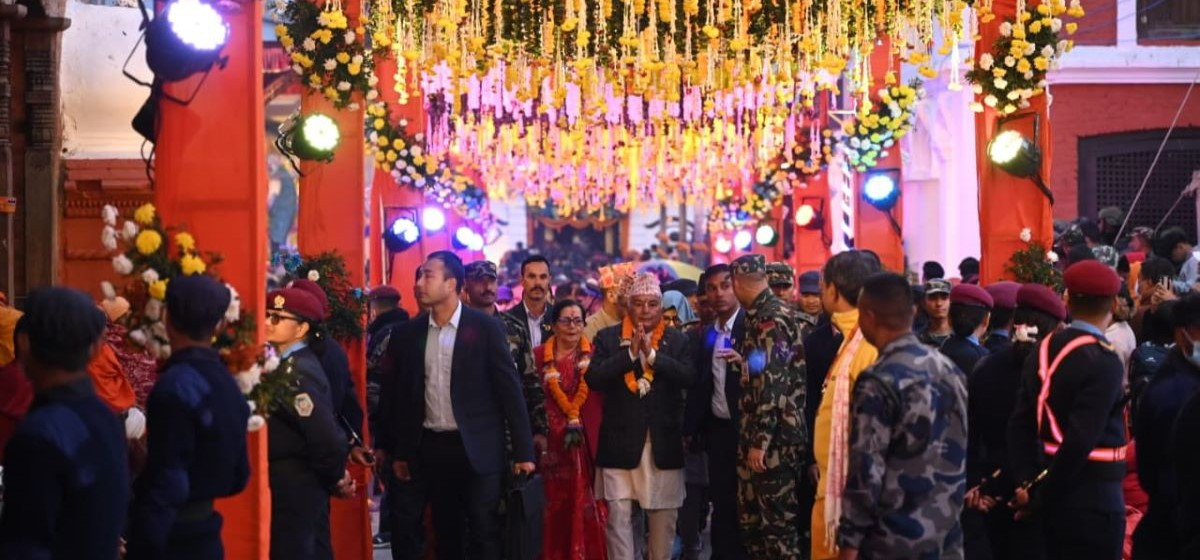 मन्दिर परिसरमा राष्ट्रपति पौडेललाई पशुपति क्षेत्र विकास कोष सञ्चालक परिषद्का अध्यक्षसमेत रहेका संस्कृति, पर्यटन तथा नागरिक उड्डयनमन्त्री अनिल कुमार सिन्हा सहितका मन्त्रिहरू, मन्त्रालयका सचिव तथा कोषका पदाधिकारी, स्थानीय नियकायका प्रतिनिधि, गुठी संस्थानका उच्चपदस्थ अधिकारीलगायतका कर्मचारीले स्वागत गरेका थिए ।