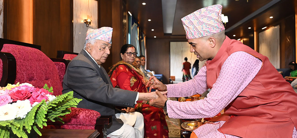 राष्ट्रपति पौडेलसहित प्रथम महिला सविता पौडेलले पण्डित अर्जुन न्यौपानेबाट आज निर्धारित साइतअनुसार वैदिक रक्षाबन्धन ग्रहण गरेको राष्ट्रपतिको सचिवालयले जनाएको छ। राष्ट्रपति भवन शीतल निवासमा राष्ट्रपति पौडेलसँगै आफन्तजनले रक्षाबन्धन ग्रहण गरेका छन्।