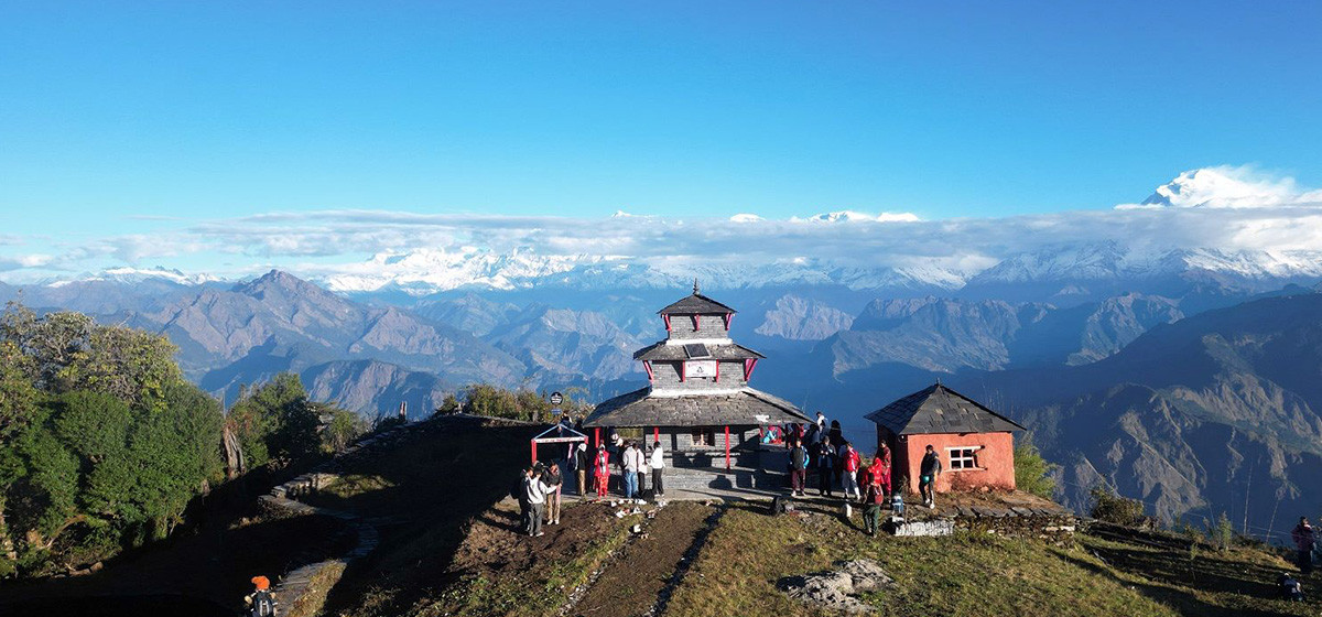 घना जङ्गलको बीचमा रहेको पहाडको टाकुरा। पूर्व र उत्तरतर्फ लहरै हिमाल। सूर्योदय र सूर्यास्तको मिठास दृश्य। नदी किनारदेखि हिमालको चुचुरोसम्मको भूगोल एकैठाउँबाट देख्न सकिने शान्त र एकान्त ठाउँ। चराचुरुङ्गीको चिरबिर आवाज।