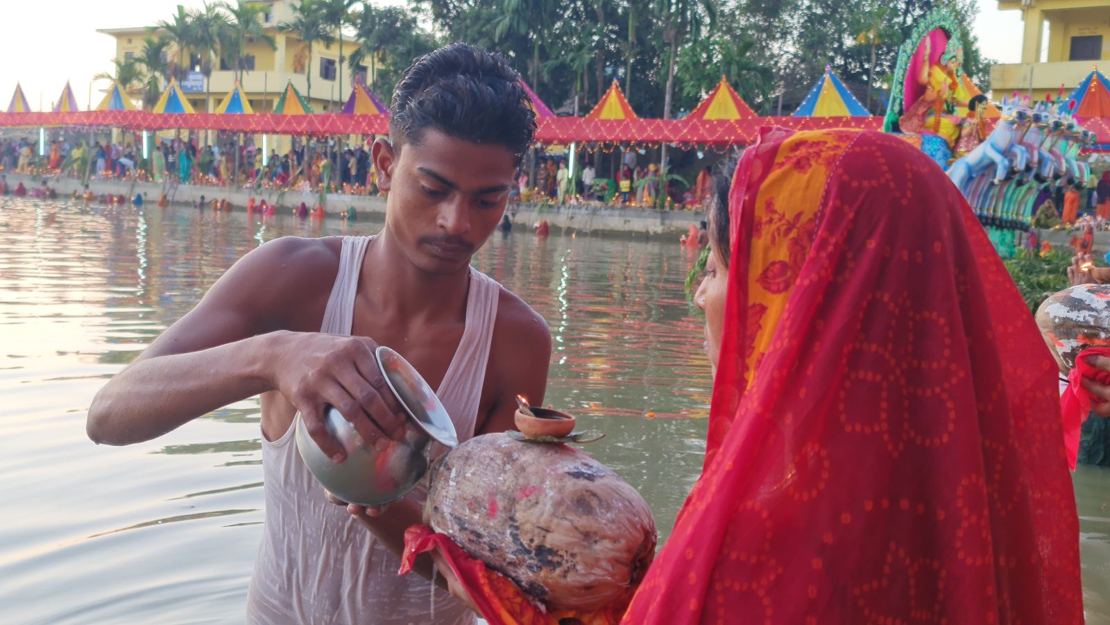 सूर्योदयसँगै बाँसको सुपुलीमा विधिवत् रूपमा नरिवल, ठेकुवा र अन्य पूजा सामग्रीको अघ्र्य दिएर व्रतालुहरूले व्रत विधिवत् रूपमा सम्पन्न गरेका छन्।