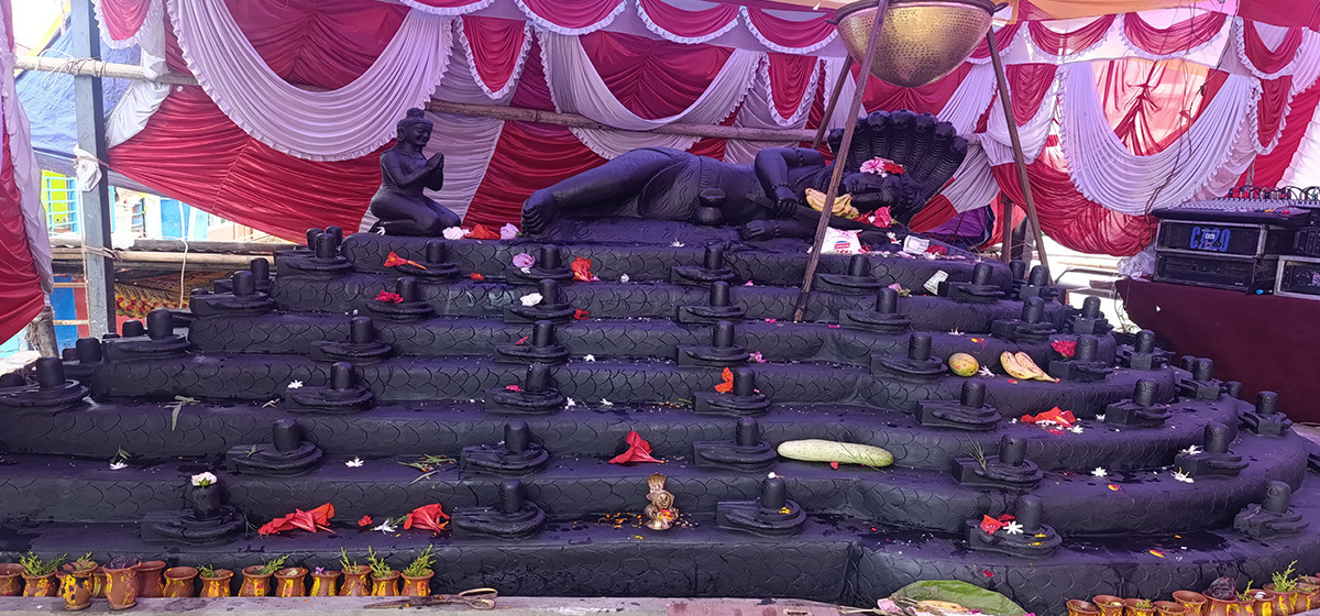 सात तहमा बनाइएको शिवलिङ्गको हरेक तहमा १०८ वटा नाग बनाइएको छ। अध्यक्ष श्रेष्ठले बुबा धनलाल र आमा न्हुच्छेमायाको चाहनाबाट निजी प्रयासमा यो मूर्ति बनाएको र यहाँ मन्दिर निर्माण जारी रहेको बताए। मन्दिर निर्माणलगायतमा स्वेच्छिक सहयोग गर्न सकिने श्रेष्ठले बताए। यहाँ रु ३० हजार १०५ सहयोग गर्नेका नाममा एउटा शिवलिङ्ग र आजीवन सदस्य रहने तथा तीन पुस्ताको नाम शिलापत्रमा राखिने जनाइएको छ।