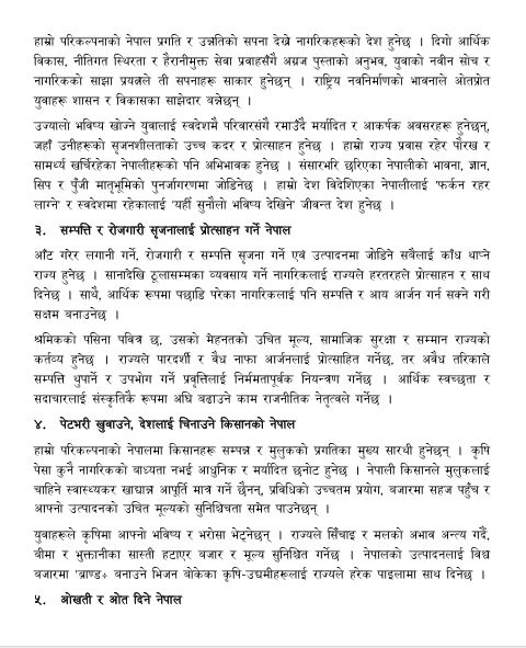भिजनमा पार्टीले आगामी पाँच वर्षभित्र हासिल गर्ने लक्ष्यहरू र ‘बदलियो कांग्रेस, बदलिन्छ देश’ भन्ने उद्घोषका साथ नागरिकको जीवनस्तर उकास्ने प्रतिबद्धता व्यक्त गरेको छ।