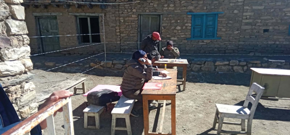 ‘बाक्लो जमेको हिउँलाई डोजर लगाएर हटाइएको रहेछ। झन्डै १० किलोमिटर त साहै्र सकसपूर्ण यात्रा बन्यो,’ निर्वाचन गराउन खटिएका मतदान अधिकृत राजेश गुप्ता भन्छन्, ‘तरपनि गाउँ आएर तयारी पुरा गरेका छौ। चिसो छल्न तल झरेका मतदाता पनि गाउँ फर्केका छन्।’