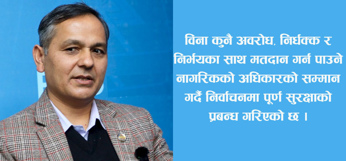 निर्वाचनको प्रमुख आधार र आवश्यकता भनेको सुरक्षा नै हो । निर्वाचन आयोगले चुनावसम्बन्धी प्रक्रियागत कामहरु गरिरहँदा यता नागरिकले भर गर्ने भनेको सुरक्षाको हो । त्यसैले नागरिकले ढुक्क भएर मतदान गर्न पाउनेगरी मुलुकको सुरक्षा संयन्त्र के कसरी परिचालित भएको छ ?
