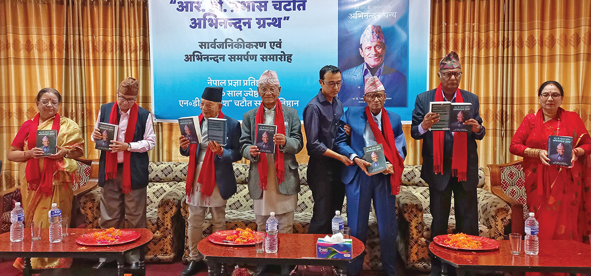नेपाली वाङ्मयका अथक साधक भाषासेवी प्राज्ञ आरडी प्रभास चटौतबारे लेखिएको ‘आरडी प्रभास चटौत अभिनन्दन ग्रन्थ’लोकार्पण गरिएको छ। एनडी प्रकाश चटौत स्मृति प्रतिष्ठानद्वारा शनिबार आयोजित कार्यक्रममा राष्ट्रिय मानव अधिकार आयोगका अध्यक्ष तपबहादुर मगर र वरिष्ठ साहित्यकारले संयुक्त रूपमा उक्त कृति लोकार्पण गरेका हुन्।