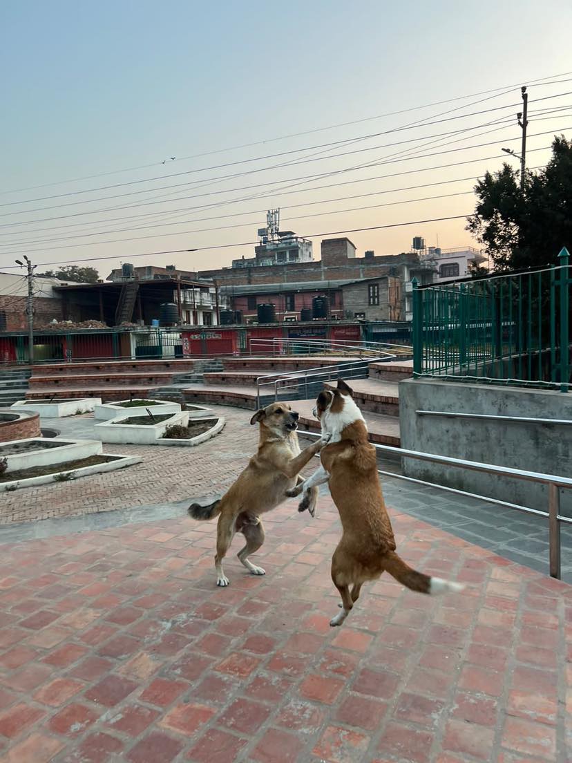 केहीबेर पार्कको माहोल नै निकै रमाइलो बन्यो। दुवै कुकुरले कहिले एक अर्कालाई म्याइँ खान्थे, कहिले दुवै एक अर्कालाई समातेर हेरिरहेजस्तो गर्थे अनि मुस्कुराइरहेजस्तो पनि गर्थे। यस्तो लाग्थ्यो कि एक अर्काको सन्चोबिसन्चो सोधिरहेका छन्।