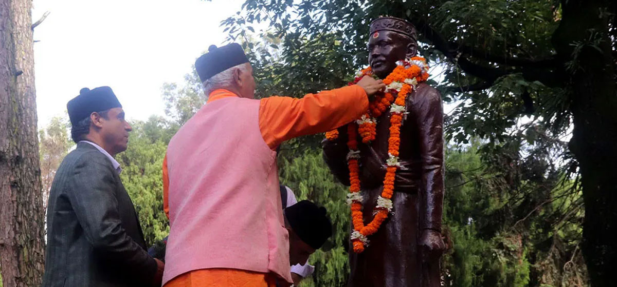 भानुभक्तको सालिकमा माल्यार्पण गर्दै पूर्वउपकुलपति उप्रेतीले नेपाली भाषाको विकास गरी नेपालीलाई एकताबद्ध गर्न आदिकविको ठूलो योगदान रहेको बताए।