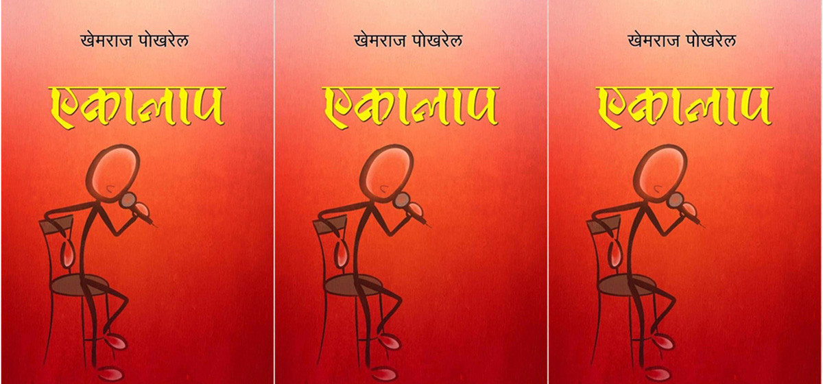 ‘एकालाप’ खेमराज पाेखरेलकाे पुस्तककाे शीर्षक हो। एकालाप भनेको एक+अलाप हो। यसको अर्थ कसले के भन्छ, कसले के सोच्दछ, त्यसको कुनै मतलब नहुने, आफ्नो मनको अलाप हो र पूरै किताब हेर्दा खेमराज पाेखरेलको व्यक्तित्व त्यस्तै झल्किन्छ।