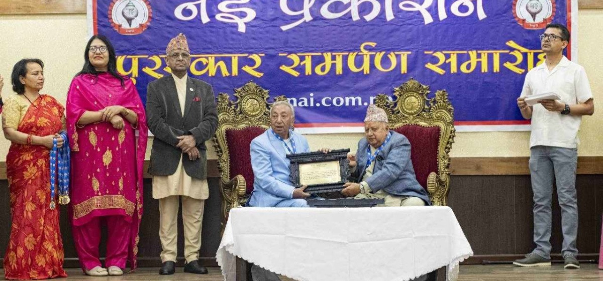 नइ प्रकाशनले आज काठमाडौंमा आयोजित समारोहमा नेपाल र भारतका २८ प्रतिभालाई ताम्रपत्र र नगद राशिसहित २०८० सालका नइ पुरस्कार प्रदान गरेको छ।