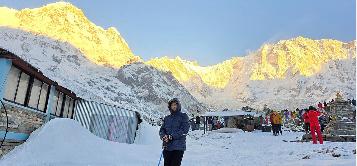 अन्नपूर्ण आधार शिविर पुगेर फर्किनेहरूको अनुहारमा झल्किएको खुसी हेर्दै त्यस्तै खुसी भेट्ने हतारोले छिटो–छिटो मेरा पाइला लम्किन थालिरहे। पाइलाले फड्को मार्न थाल्नुअघि मैले धेरै कुरा सोचेँ– राताम्मे गुराँसको स्वागत, अनन्त हिउँको लुकाई, उकालो र ओरालोको असहज खेल। त्यसै समय मैले महसुस गरें, यो यात्रा हिमालसम्मको यात्रा मात्रै होइन, यो जीवनको यात्रा पनि हो। जीवनका उकालो र ओरालोहरूसँग जस्तो।