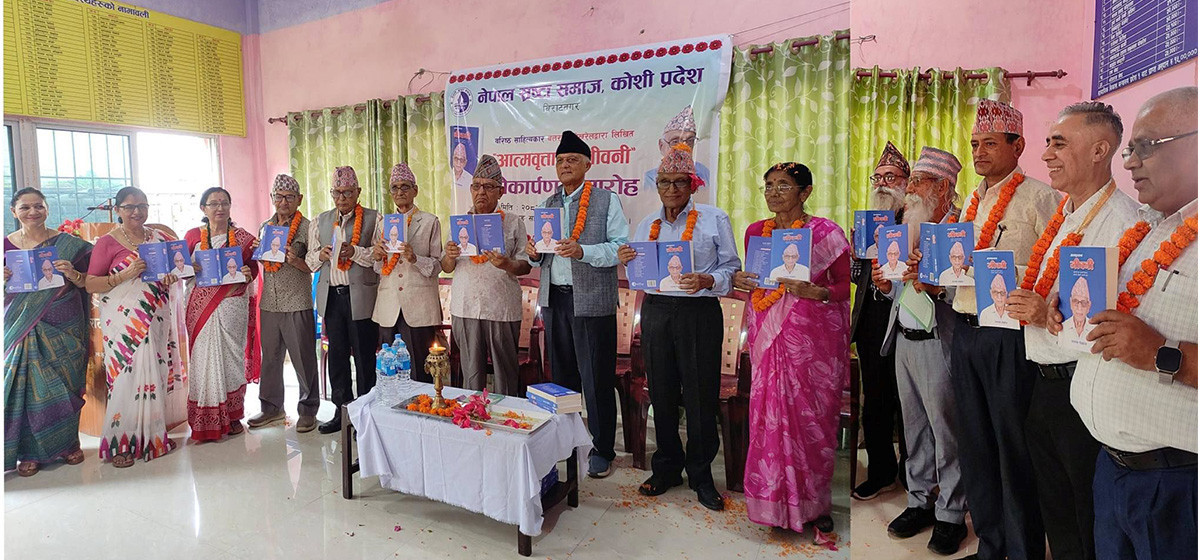 नेपाल स्रष्टा समाज कोशी प्रदेशले वरिष्ठ साहित्यकार बलराम पोखरेलको पन्ध्राै कृति ‘आत्मवृत्तान्त जीवनी’ को लोकार्पण गरेको छ। विराटनगर- ४, गोग्राहा चोकस्थित खोटाङ सामाजिक सेवा मञ्चको सभा हलमा नेपाल स्रष्टा समाज कोशी प्रदेशका अध्यक्ष कृष्णप्रसाद भण्डारी ‘मार्सेली’ काे अध्यक्षता र प्राडा खगेन्द्र आचार्यको प्रमुख आतिथ्यमा कृति लोकार्पण गरिएको हो।