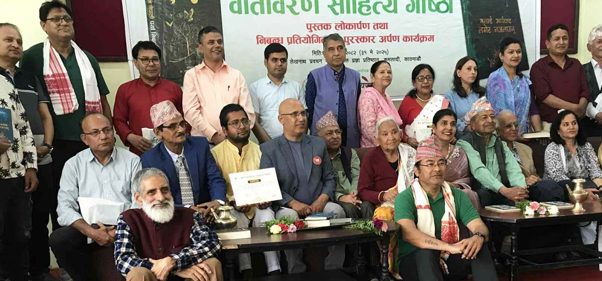 शनिबार काठमाडौंस्थित नेपाल प्रज्ञा प्रतिष्ठानमा आयोजित कार्यक्रममा ‘प्रकृतिप्रति प्रेम, करुणा र उत्साह किन’ शीर्षकमा निबन्ध प्रस्तुत गरेका हरिबोल काफ्ले दोस्रो हुँदै नगद ४० हजार रुपैयाँसहित सम्मानित भए।