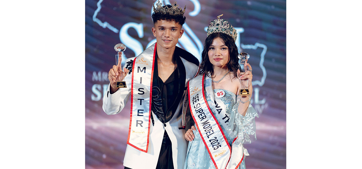 एभरेष्ट इभेन्ट्सको आयोजना र एन प्लस प्रोफेसनलको प्रस्तुतिमा भएको चौथो संस्करणको ‘मिस्टर र मिस एसईई सुपर मोडल-२०२५’ को उपाधि मिस्टरतर्फ श्याम झा र मिसतर्फ दिव्या थापाले जितेका छन्।