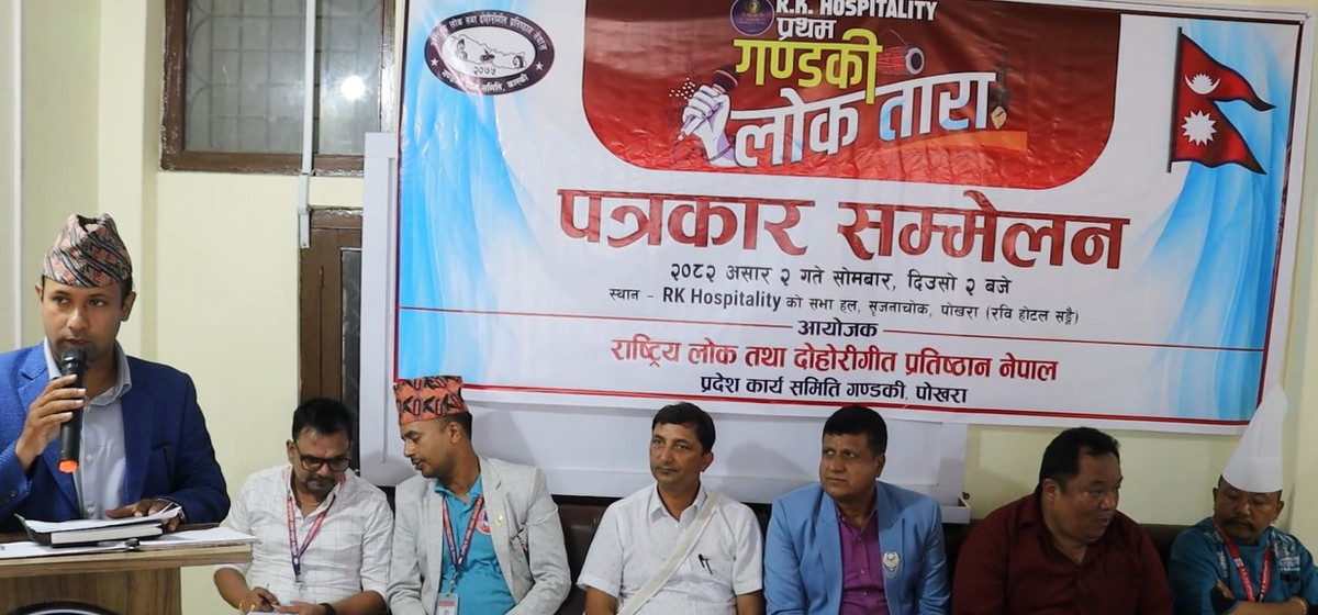 पोखरामा गण्डकी लोकतारा–२०८२ हुने भएको छ । राष्ट्रिय लोक तथा दोहोरी गीत प्रतिष्ठान नेपाल, गण्डकी प्रदेश समितिको आयोजनामा लोक संस्कृतिको संरक्षण गर्दै नयाँ लोक दोहोरी कलाकार खोजी गर्नका लागि गण्डकी लोकतारा हुन लागेको सोमबार पोखरामा पत्रकार सम्मेलन गरेर जानकारी दिइएको हो । प्रतियोगितालाई आरके हस्पिटालिटीले मुख्य प्रायोजन गरेको छ ।