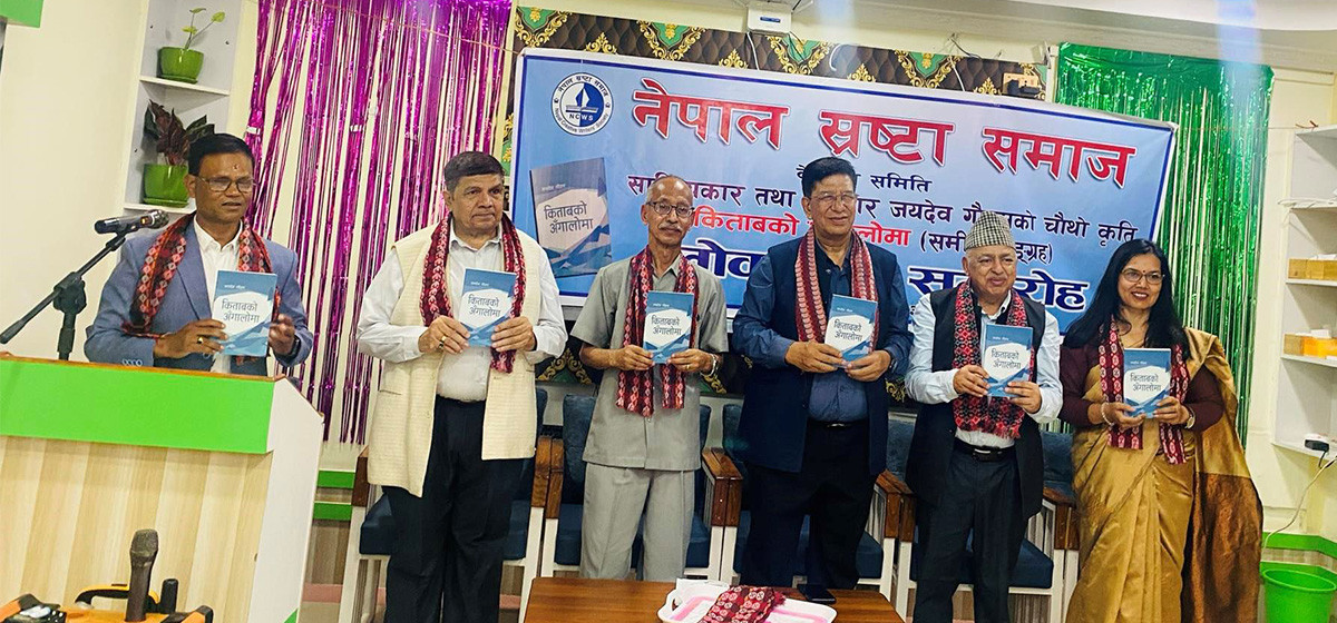 नेपाल स्रष्टा समाजले साहित्यकार तथा पत्रकार जयदेव गौतमको ‘किताबको अँगालोमा’ समीक्षासङ्ग्रहकाे लोकार्पण गरेको छ।