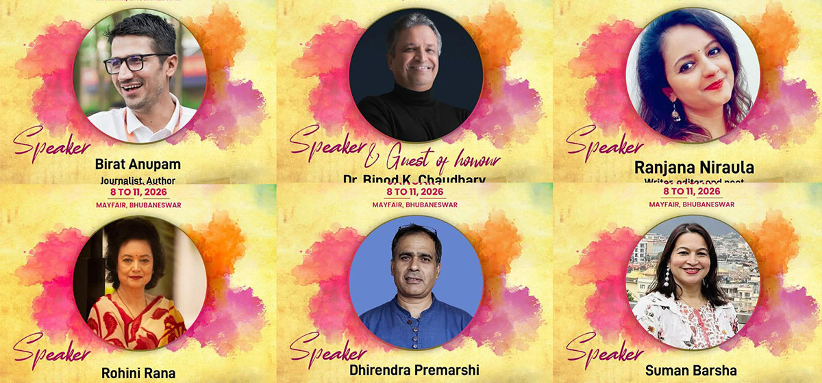 बाह्राै कलिंग साहित्य महोत्सवमा ८ नेपाली लेखक - धीरेन्द्र प्रेमर्षि, रोहिणी राणा, रञ्जना निरौला, सुमन वर्षा, विराट अनुपम, रूपा झा र केवोरा भट्टराई महोत्सवमा वक्ताको रूपमा सहभागी हुँदै छन्।