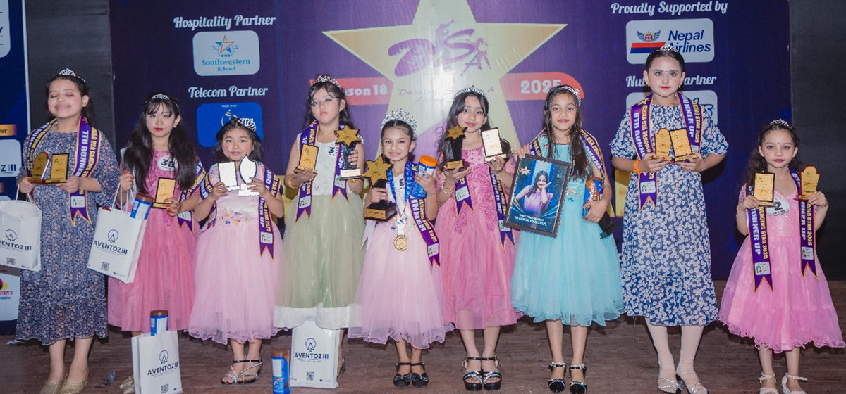 परिवर्तन इभेन्ट हाउस प्रालिको आयोजनामा राष्ट्रिय नाचघर जमलमा ‘डि एस ए स्टार २०२५ सिजन-१८’ को फिनालेमा विधागत रुपमा बालबालिकाहरु विजेता बनेका छन्।