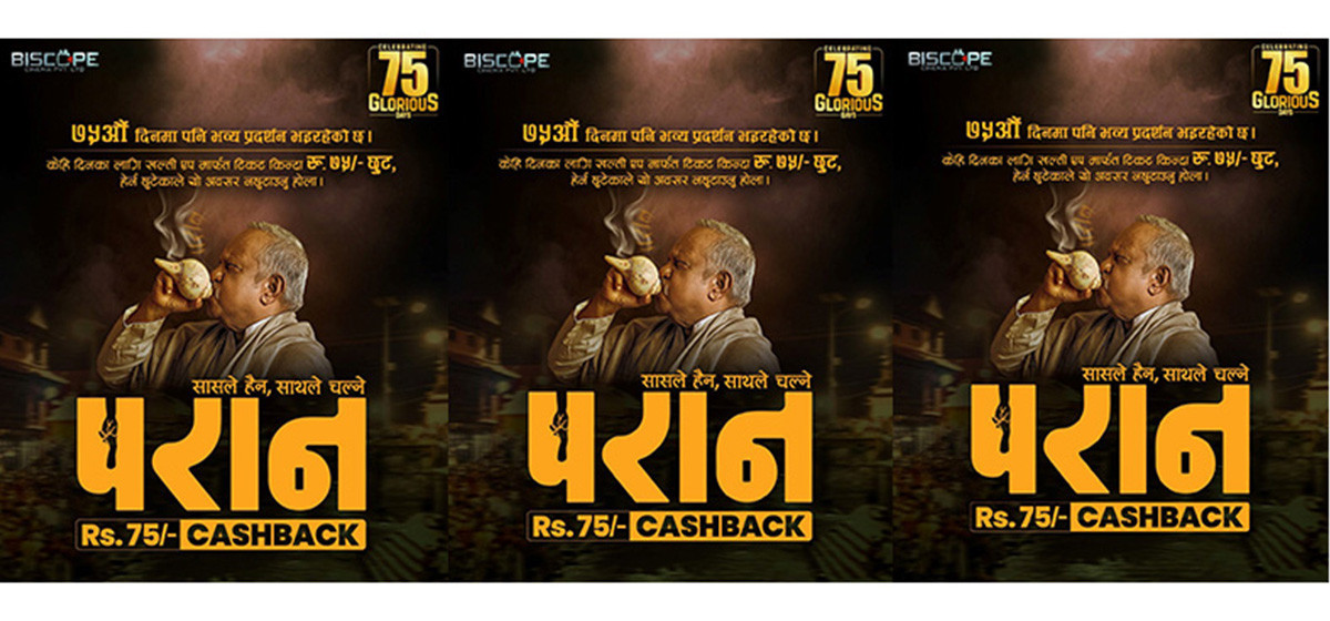 फिल्म 'परान'ले प्रदर्शनको ७५ औं दिन पूरा गरेको अवसरमा निर्माण टिमले केही दिनका लागि टिकटमा ७५ रुपैंया छुटको व्यवस्था गरेको छ।