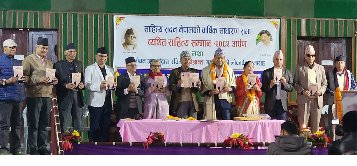 साहित्य सदन नेपालकाे ५ औ वार्षिक साधारणसभाकाे उपलक्ष्यमा भएकाे कार्यक्रममा वरिष्ठ साहित्यकार डा. तुलसीप्रसाद भट्टराईलाई 'व्यथित साहित्य सम्मान २०८२, अर्पिएकाे थियाे।