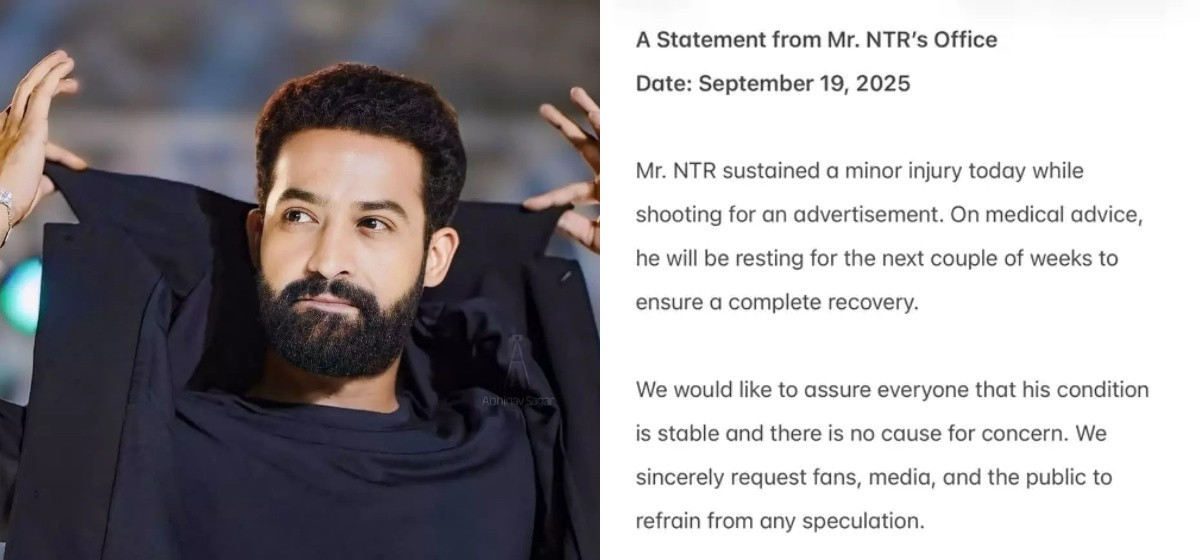 विज्ञप्तिमा भनिएको छ, ‘आज (शुक्रबार) विज्ञापन छायांकनका क्रममा एनटीआरलाई सामान्य चोट लाग्यो। डाक्टरले उनलाई पूर्ण रूपमा निको हुन केही हप्ता आराम गर्न सुझाएका छन्। उनको अवस्था स्थिर छ। चिन्ता गर्नुपर्ने कुनै कारण छैन। प्रशंसक मिडिया र फ्यानलाई अनुमान नलगाउन अनुरोध गर्छौं।’