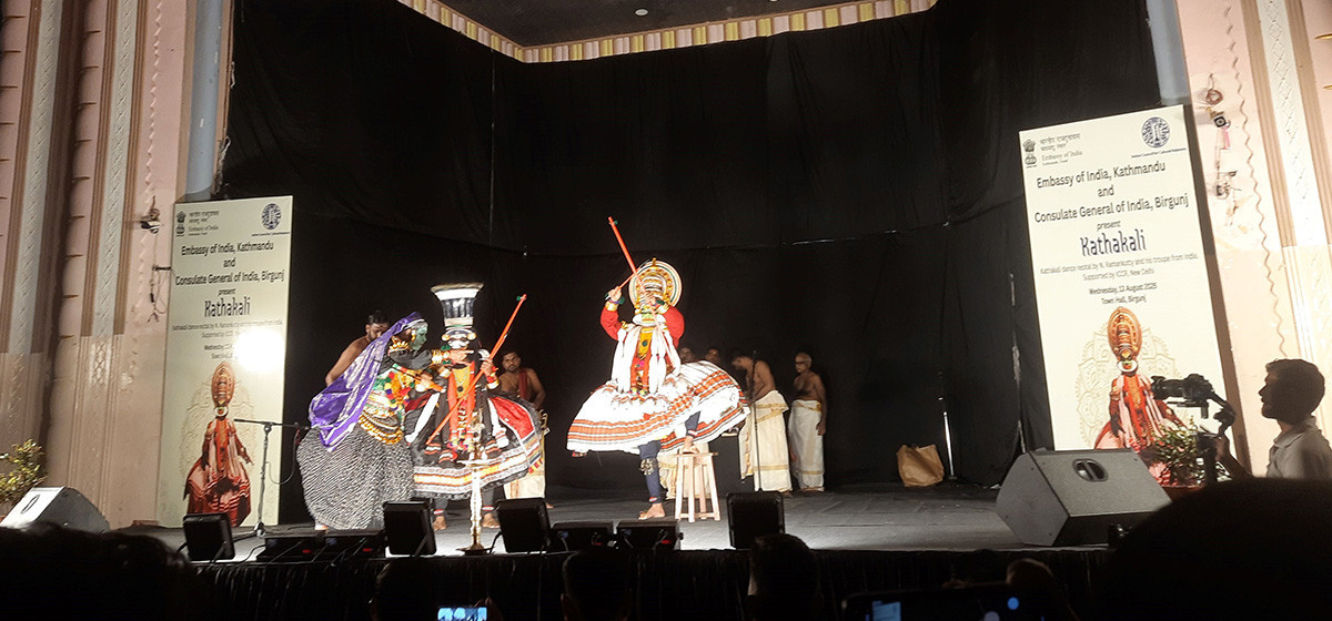 भारतको ७९औं स्वतन्त्रता दिवसको पूर्वसन्ध्यामा वीरगञ्जमा बुधबार भारतीय कला संस्कृति झल्किने ‘कथाकली’ नृत्य प्रस्तुत गरिएको छ। काठमाडौंस्थित भारतीय दूतावास र भारतको महावाणिज्य दूतावास वीरगञ्जको आयोजनामा बुधबार बेलुका यहाँ नृत्य प्रस्तुत गरिएको छ।