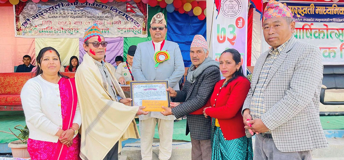 शिक्षासेवी तथा विद्यालयका पूर्व विद्यालय व्यवस्थापन समिति अध्यक्ष देवीप्रसाद रिजालकाे प्रमुख आतिथ्य र विद्यालय व्यवस्थापन समिति अध्यक्ष इन्दिरा बस्नेतको अध्यक्षतामा वार्षिक उत्सव भएकाे हाे।