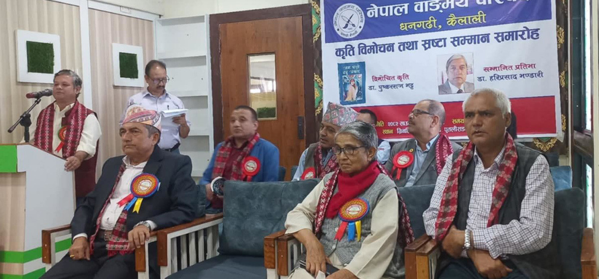 नेपाल वाङमय परिषद धनगढी, कैलालीले कृति लाेकार्पण तथा स्रष्टा सम्मान गरेको छ। संस्थाको अध्यक्ष डा. पुष्करराज भट्टको अध्यक्षता र पूर्व पशुपक्षी मन्त्री तथा साहित्यकार शान्ता मानवीकाे प्रमुख आतिथ्यमा कार्यक्रम भएकाे हाे।