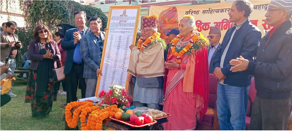अभिनन्दन समारोह समितिका संयोजक तथा साहित्यिक पत्रकार संघका अध्यक्ष राधेश्याम लेकालीको अध्यक्षतामा चन्द निवास भक्तपुर लोकन्थली, थिमीमा सामूहिक अभिनन्दन गरिएकाे हाे।
